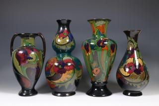 w.b. vazen en hangjardinierre. Allen uitgevoerd met geschilderde florale decoratie.
