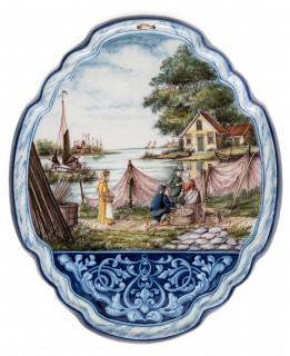 Uitgevoerd met polychroom geschilderde voorstelling van Zuiderzee landschap.