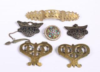 Rusland, zilveren niello gesp en zilver vergulde broche met cloisonné email.