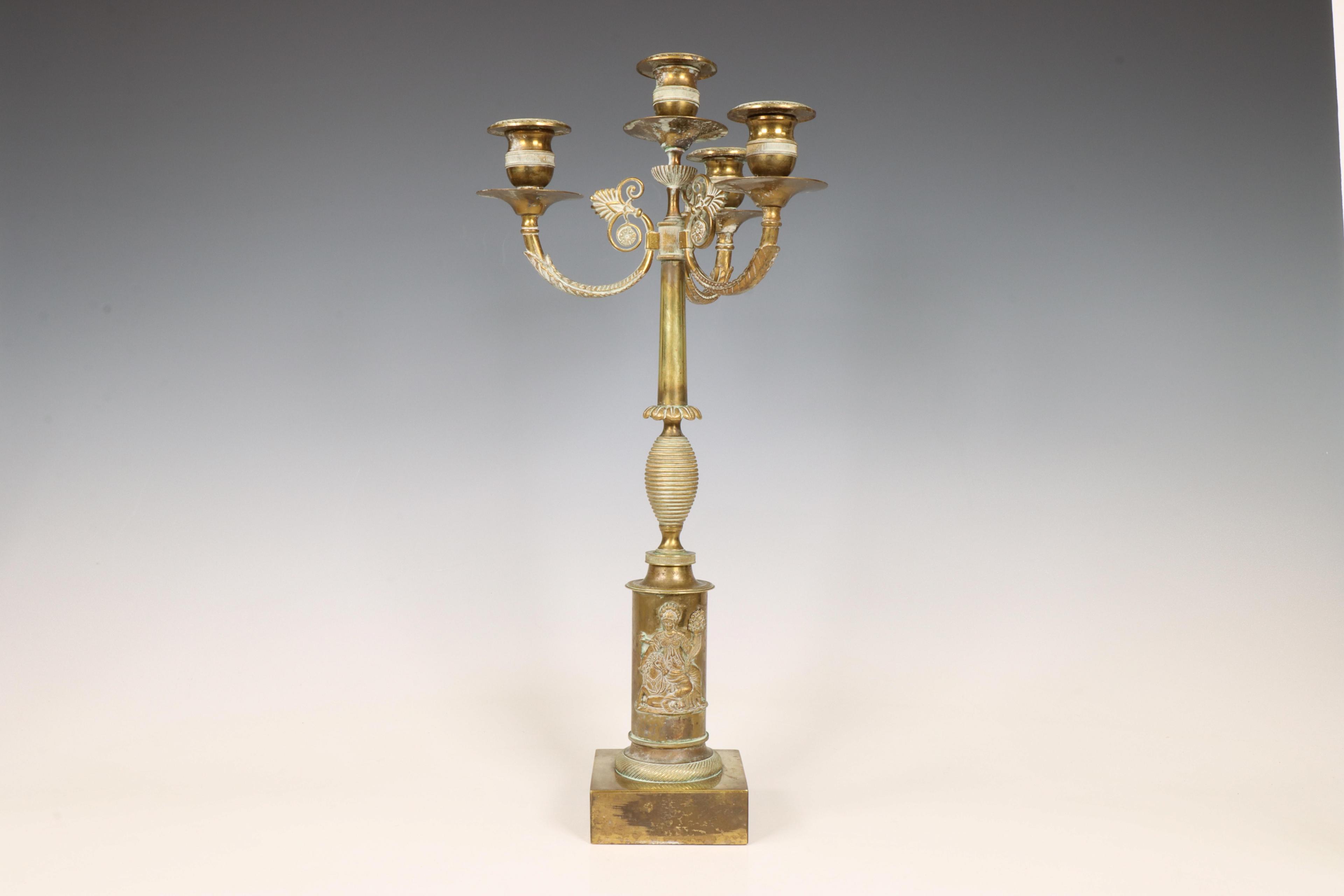 Vuurvergulde vierlicht candelabra, circa 1820.