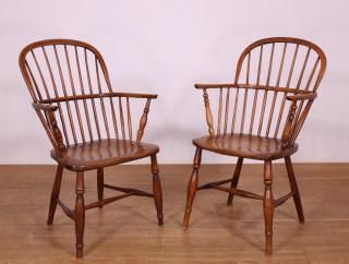 Engeland, paar iepenhouten Windsorstoelen, 18e eeuw,