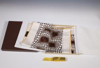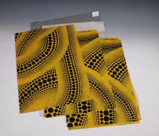 Yajoi Kusama voor Louis Vuitton, zijden sjaal met stippen print en LV logo. Collectie van 2012