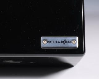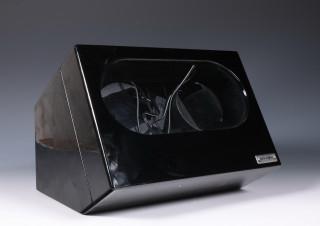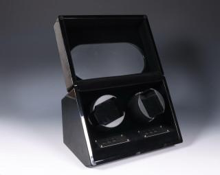 Uitgevoerd in zwarte pianolak. Plek voor twee horloges.