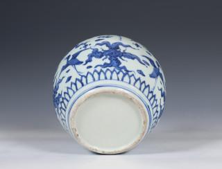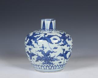 the bulbous sides decorated with cranes among cloud scrolls