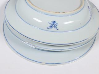 China, set of six blue and white porcelain soup plates, Qianlong period (1736-1795),