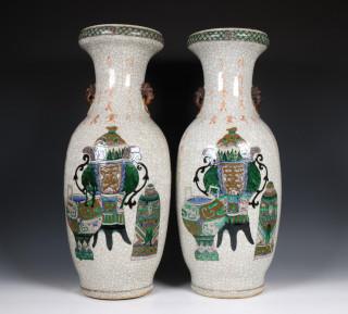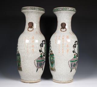 China, pair of large Nanjing porcelain vases, 19th/ 20th century,
