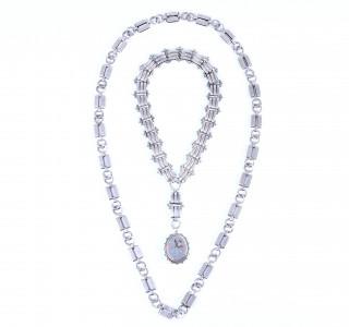 Twee grove zilveren schakelcolliers, eerste helft 20ste eeuw.