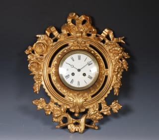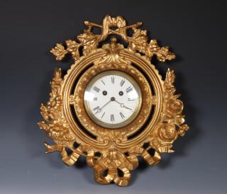 Goud gelakte gietijzeren cartelklok, ca. 1900;
