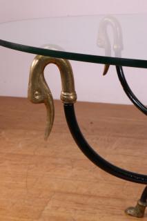 op zwart gelakt stalen onderstel met messing zwanenkoppen en voetjes