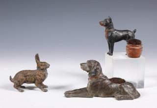 Drie Weense bronzen, 2 honden en haas, ca. 1900;