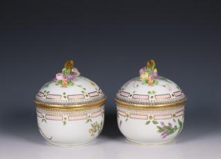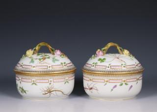 Royal Copenhagen, twee porseleinen terrines 'Flora Danica', 20e eeuw;