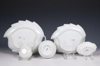 Bestaande uit drie schalen, bloemvaas, dekselpot en losse deksel.