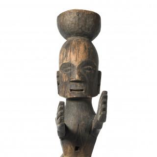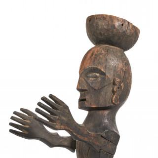in standing position, the separately carved arms projecting, pupuk hole, a pierced hole in between the legs.