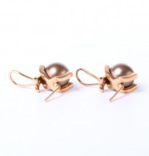 18 k. Red gold arc-shaped ear studs, each set with a brown round Tahiti pearl (diam. approx. 12.2 mm). The ends of the arches are each set with a brilliant cut diamond (approx. 0.08 ct in total).