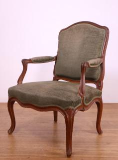 Frankrijk, bruin en zwart gelakt beukenhouten fauteuil, Louis XV, 18e eeuw,