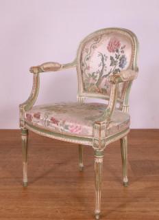 Frankrijk, groen en wit gelakt beukenhouten fauteuil in Louis XVI-stijl,