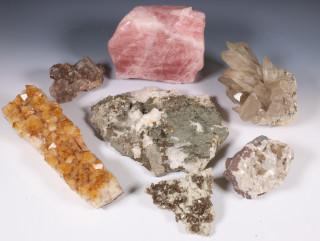 Zeven mineraal kristallen voornamelijk quartzen.