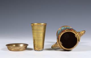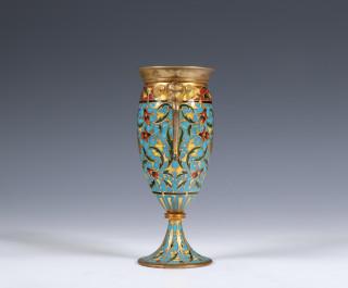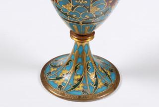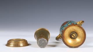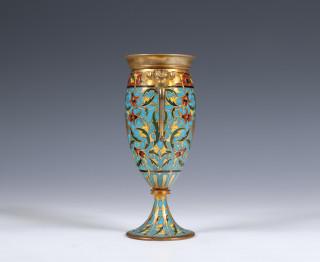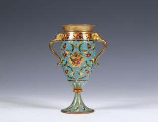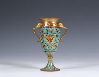 Ferdinand Barbedienne (1810-1892), Verguld bronzen siervaas met cloisonne emaille op blauw font, ca. 1880;