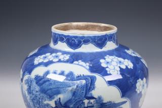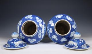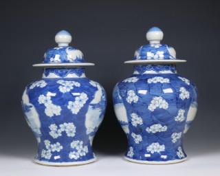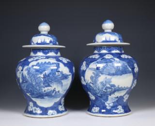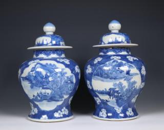 China, pair of blue and white porcelain baluster jars and covers, 19th century,