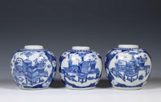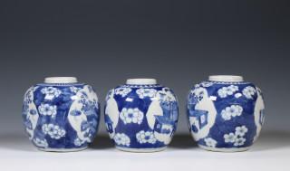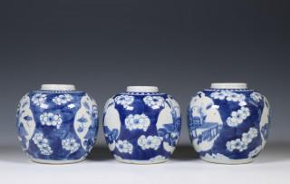 China, three blue and white porcelain ginger jars, 19th century,