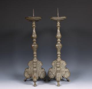 Duitsland, paar tinnen eenlichts penkandelaren, Barok, gedateerd 1752;