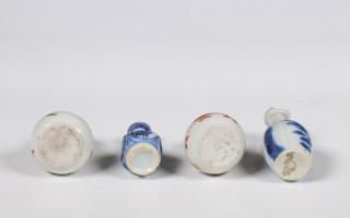 two variously painted with flowers in iron-red and gilt and two blue and white vases (all with rim chips)