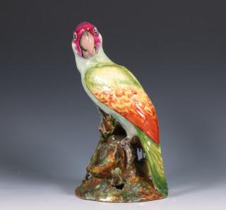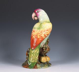 Nymphenburg, polychroom geschilderd vormstuk van papegaai, 18e eeuw;