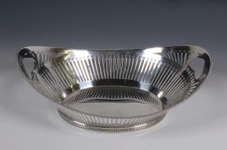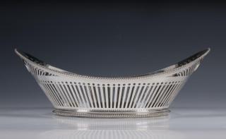ajour en schuitvormig met o.a. spijltjes en cirkelmotieven, parelrand, de grepen geintegreerd in de rand, mt. onduidelijk, Winkelier S. Schuier & Zn, 2e gehalte,