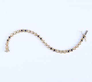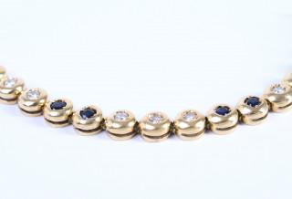 Gold rivière bracelet, alternately set with two sapphires and three diamonds (total diamond weight approx. 0.60 ct.