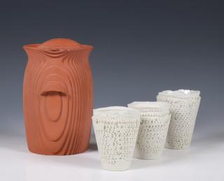 Hil Driessen, drie porseleinen bekers 'Shadow Cup', ca. 2006;