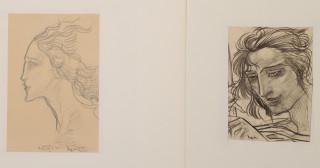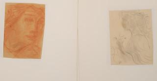 zeven tekeningen, deels gesign., éénmaal 50 x 35 cm. zesmaal ca. 10 x 15 cm.