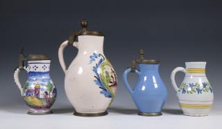 Duitsland, vier aardewerk wijnkannen, ca. 1800;