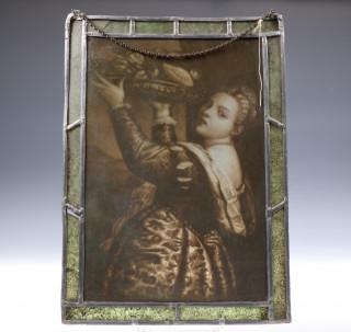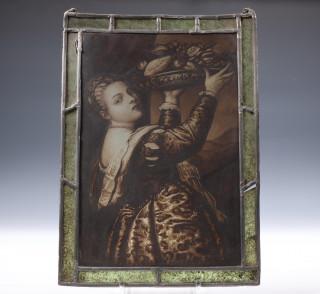 Gebrandschilderde glas in lood voorstelling, gemerkt OK, 1920;