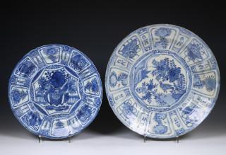 China, four various blue and white 'kraak porselein' dishes, Wanli period (1573-1619),