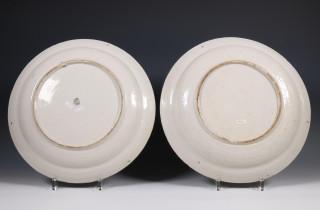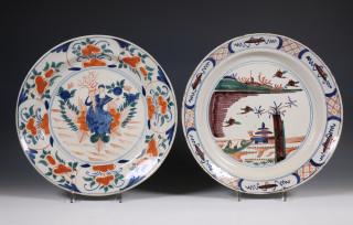 Delft, twee polychroom geschilderde schotels, 18e eeuw;