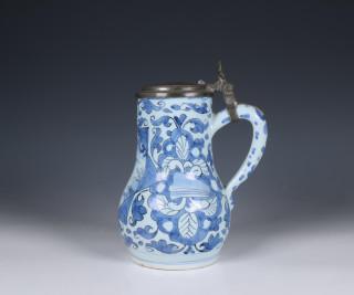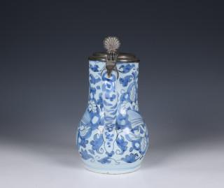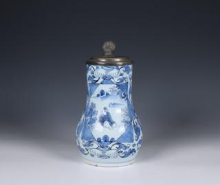 Delft, blauw wit aardewerk kan met chinoiserie decor, 18e eeuw;