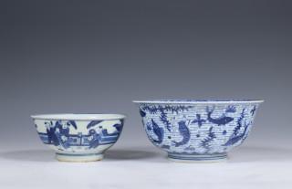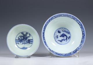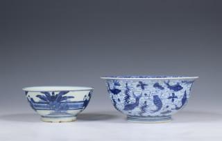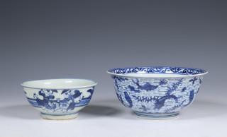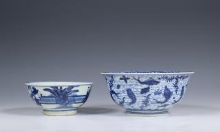 China, two blue and white porcelain bowls, late Qing dynasty (1644-1912),
