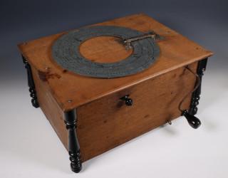 Compleet met vijftien metalen geperforeerde muziek schijven.