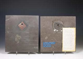 Duitsland, twee fossielen, ammonieten, Lytoceras cornucopiae, Jura