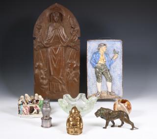 ondermeer gehamerd koperen religieuze plaat , glaswerk en porselein