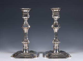 balustervormige achthoekige stam op voet met gecontourneerde voet, ronde kaarsenhouder, gemerkt André Daran? ... 925
