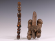 D.R. Congo, part of a ceremonial staff surmounted by a standing figure on top of a half figure and a amulet