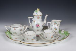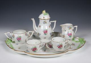 Herend, porseleinen servies gedeelte met geschilderd decor van bloemen;