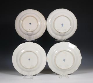Allen uitgevoerd met polychroom geschilderde florale decoratie. (een bord, gelijmd, een bord gerestaureerd, twee met haarlijnen)