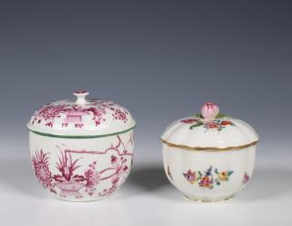 Ludwigsburg, porseleinen dekselpot met bietenrode decoratie van bloemen, 18e eeuw;