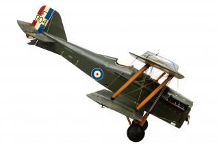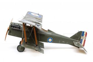 Balsahouten skeletbouw, aluminium en bespannen met kunststof en geschilderd. Uitgevoerd met mitrailleur en decals voor RFC.
