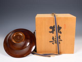 of ribbed disc shape, in signed wood box