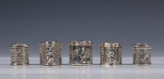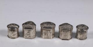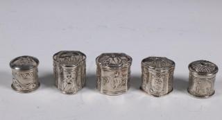 Collectie van drie loderein doosjes en twee muntdoosjes, 18e en 19e eeuw,