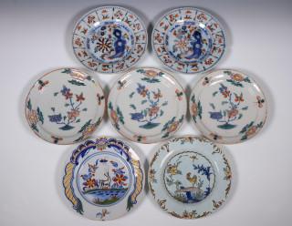 Delft, zeven aardewerk schotels, 18e eeuw;