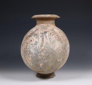China, painted earthenware cocoon jar, Han dynasty (206 BC- 220 AD),